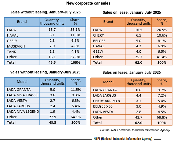 According to NAPI, in January-July 2025, deliveries of new cars to corporate clients on lease decreased by 41% on seven months of last year. Thus, following results of January-July last year, 105.0 thousand new cars were leased. Without leasing, corporate clients purchased 51.4 thousand cars last year, which was a 15.4% rise on 2025.