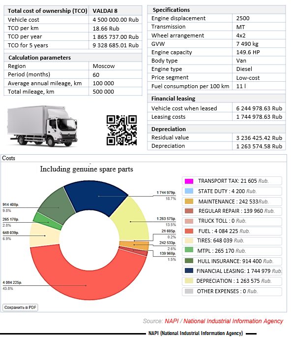 The marketing agency NAPI analyzed the total cost of ownership of VALDAI 8 van using the online DV – TCO total cost of ownership calculator.