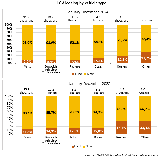 According to the marketing agency NAPI, 52.1 thousand new and used LCV* were leased in January-December 2025, which was a 25% decline on the previous year, when 69.5 thousand units were leased.