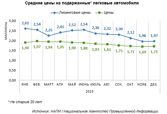 Маркетинговое агентство НАПИ проанализировало динамику средних цен на подержанные* легковые автомобили и на подержанные легковые автомобили от лизинговых компаний за январь-декабрь 2025 года.