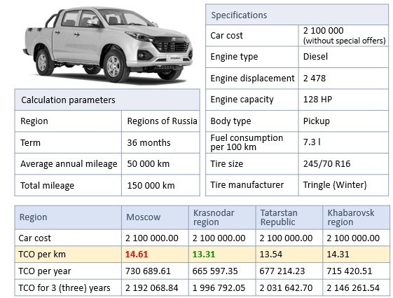 СТОИМОСТЬ ВЛАДЕНИЯ ПИКАПОМ AMBERTRUCK WORK В РАЗЛИЧНЫХ РЕГИОНАХ