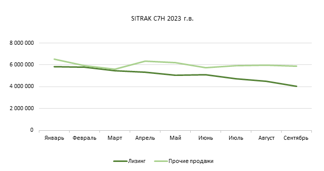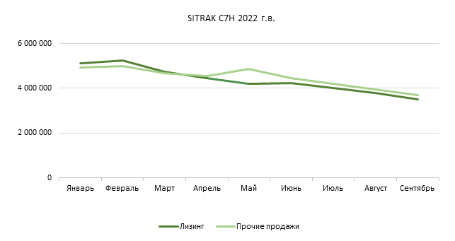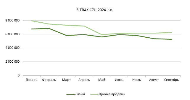 Маркетинговое агентство НАПИ проанализировало динамику средних цен на подержанные седельные тягачи SITRAK C7H, 4Х2, 2022-2024 года выпуска. За девять месяцев, с января по сентябрь 2025 года, средняя цена на тягачи SITRAK C7H 2022 года выпуска, реализуемые лизинговыми компаниями, снизилась на 31,8%, 2023 года выпуска – на 30,7%, а 2024 года выпуска – на 22%. Стоимость SITRAK C7H, продаваемых дилерами, независимыми продавцами и различными владельцами техники, также снижалась: на 25,1% на тягачи 2022 года выпуска, на 9,7% на тягачи 2023 года выпуска и на 21,5% на тягачи 2024 года выпуска.