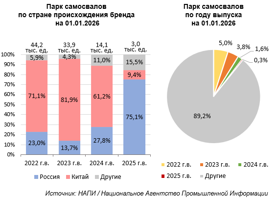 По данным маркетингового агентства НАПИ, в парке самосвалов на 01.01.2026 насчитывается 886,9 тыс. ед. техники.